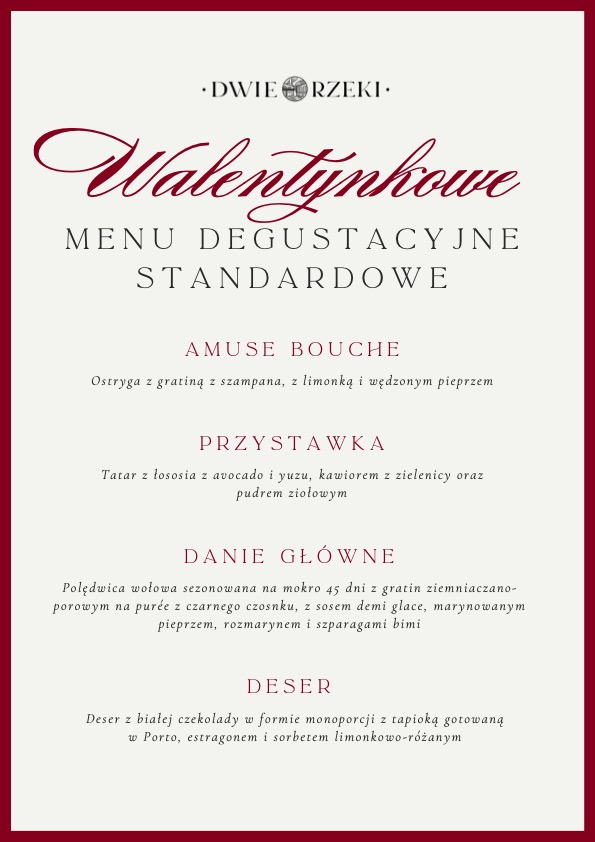 Powr贸t 馃挅 Walentynki 馃挐 smakuj膮 najlepiej we dwoje. Zapraszamy na kolacj臋 degustacyjn膮 z wyborem jednego z dw贸ch menu. W pakiecie lampka prosecco 馃dla ka偶dej osoby na powitanie 馃А馃挅 Nast臋pny